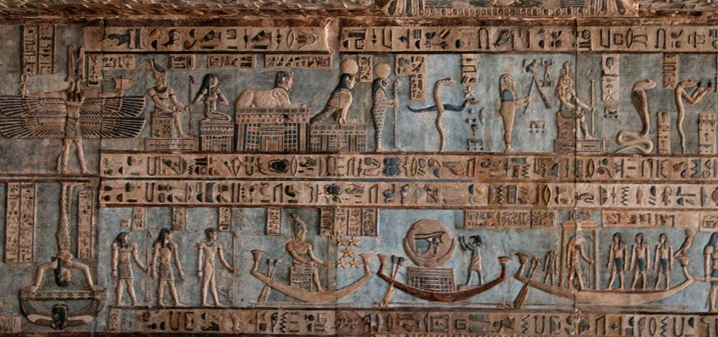 D ancient egyptian hieroglyphs carved on the wall of hathor temple 2305326