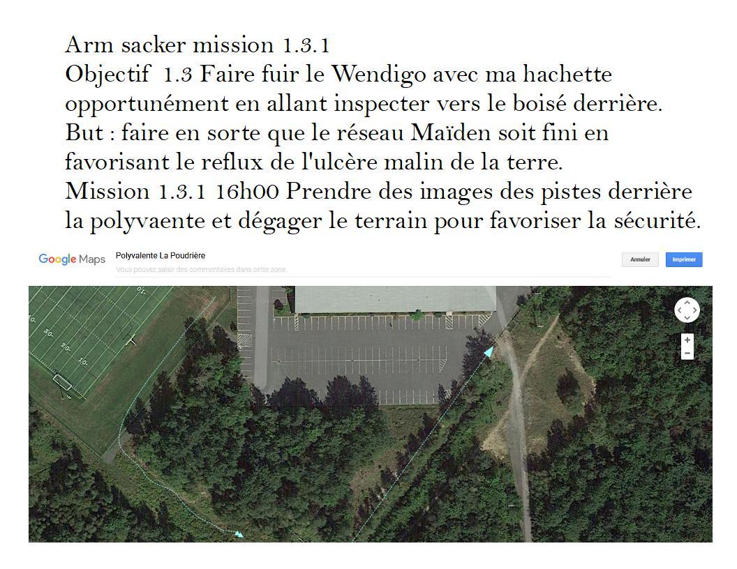 La mission 1.3.1 consistait à prendre des photographies des pistes fraîch3es du Wendigo qui s'abritait dans les boisés attendant des jeunes de l'école en excursion avec le réseau.