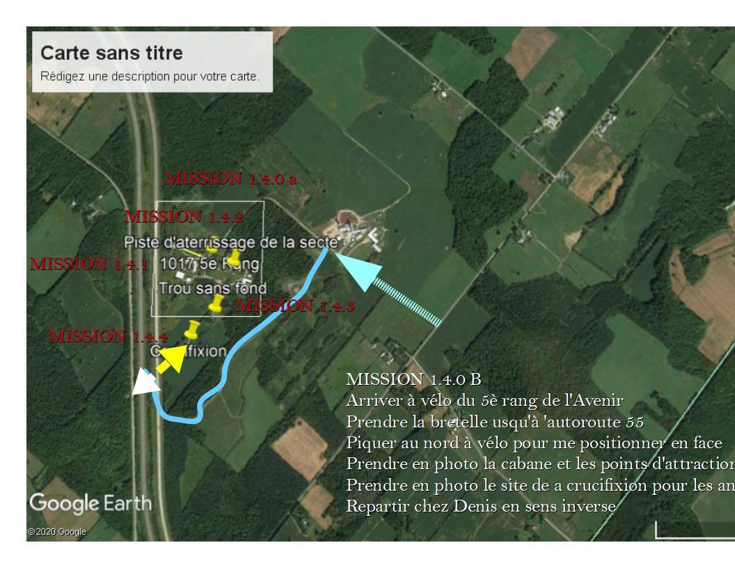 Stratégie organisationnelle 1.4.4 : lorsque j'irai je devrai prendre ce point de repère suite à la mission 1.4.4 qui consiste à faire tomber deux statues de la vierge chaque côté du mont que j'ai vu.