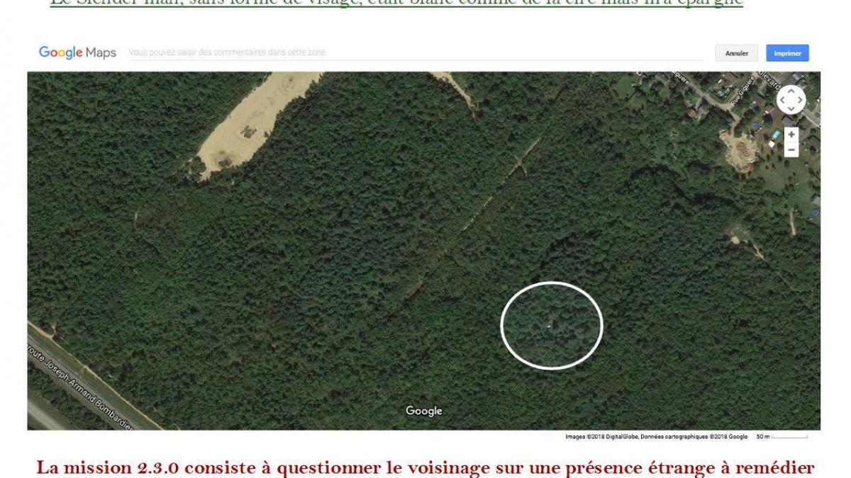 Le slender man, dans le boisé du boulevard Mercure le passage de vtt est à proscrire pour mieux faire durcir la surface et remédier aux sables mouvants après avoir retiré le fil et laisser le slender man se démunir sans cet accès.